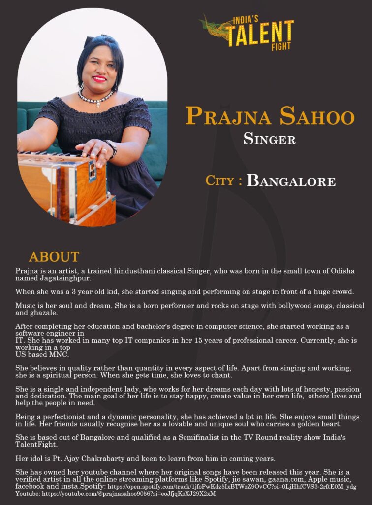 ITF Singer Prajna Sahoo Bangalore