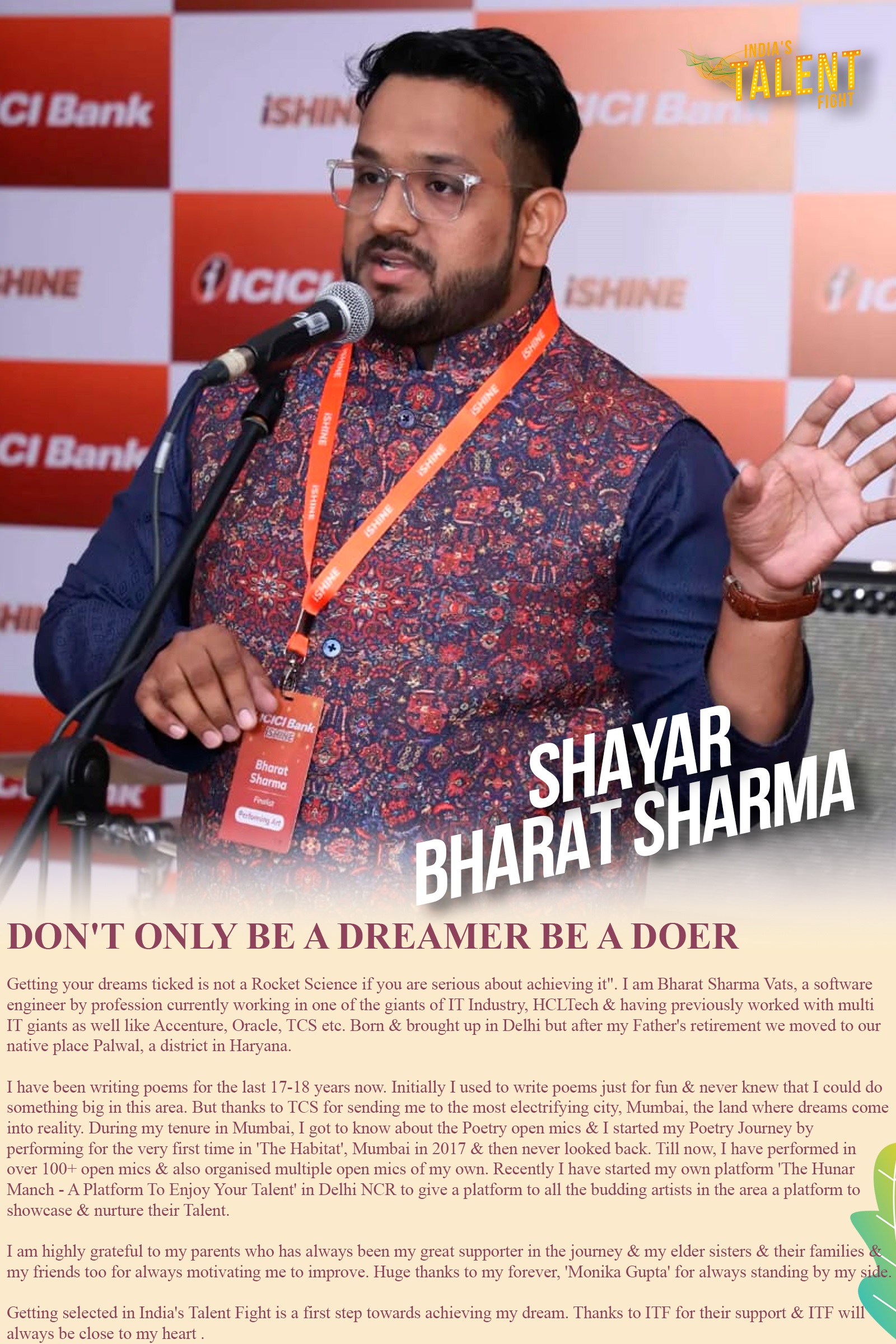 ITF SHAYAR BHARAT SHARMA PALWAL