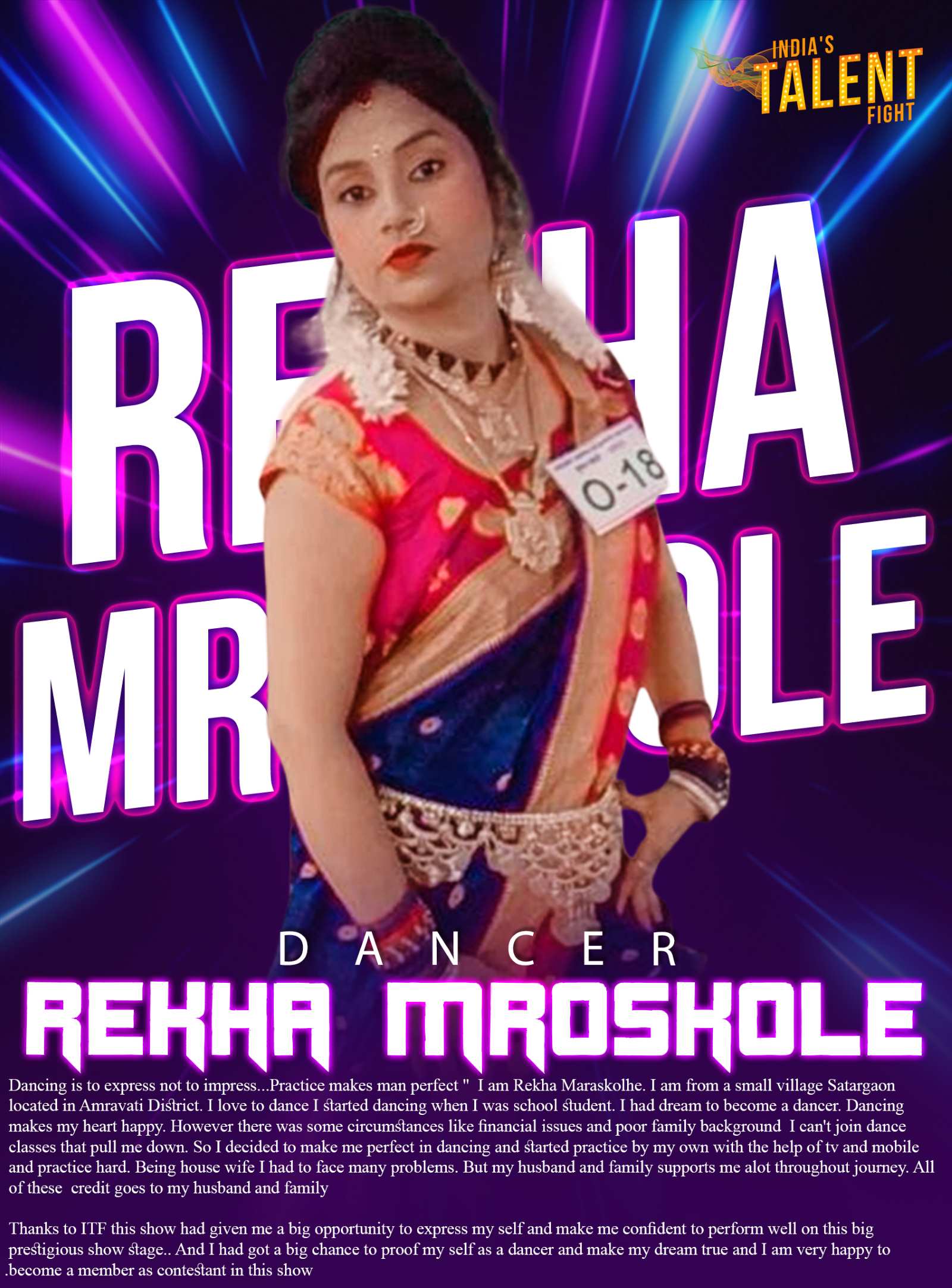 DANCER REKHA MROSKOLE AMRAVATIDancing is to express not to impress…“Practice makes man perfect ” I am Rekha Maraskolhe. I am from a small village Satargaon located in Amravati District. I love to dance I started dancing when I was school student. I had dream to become a dancer. Dancing makes my heart happy. However there was some circumstances like financial issues and poor family background I can’t join dance classes that pull me down. So