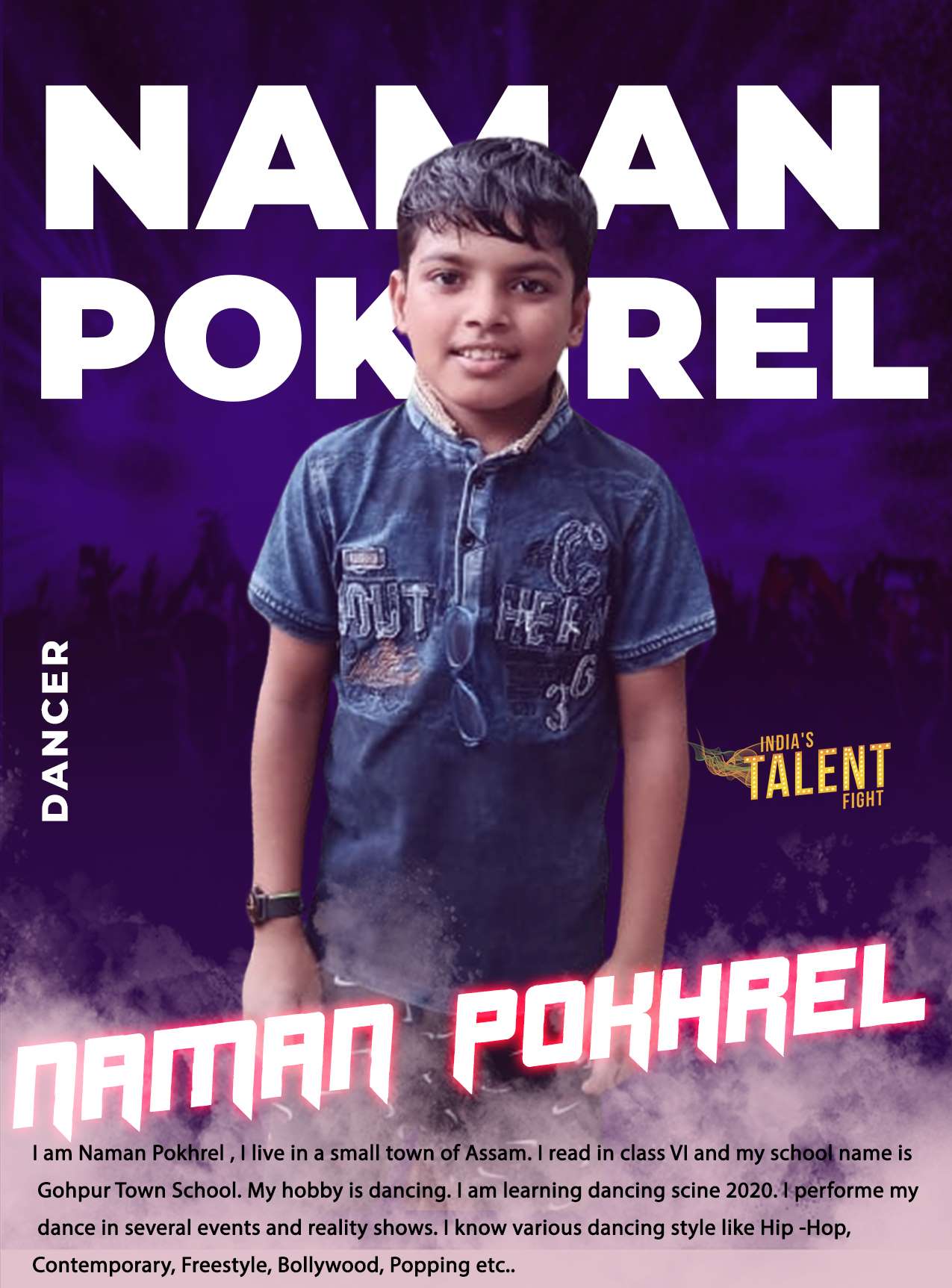 DANCER NAMAN POKHREL ASSAMI am Naman Pokhrel , I live in a small town of Assam. I read in class VI and my school name is Gohpur Town School. My hobby is dancing. I am learning dancing scine 2020. I performe my dance in several events and reality shows. I know various dancing style like Hip -Hop, Contemporary, Freestyle, Bollywood, Popping etc. ITF Season 4, itf-dancing ITF Singer sweety suri ITF Season 7, Singing ITF Singer