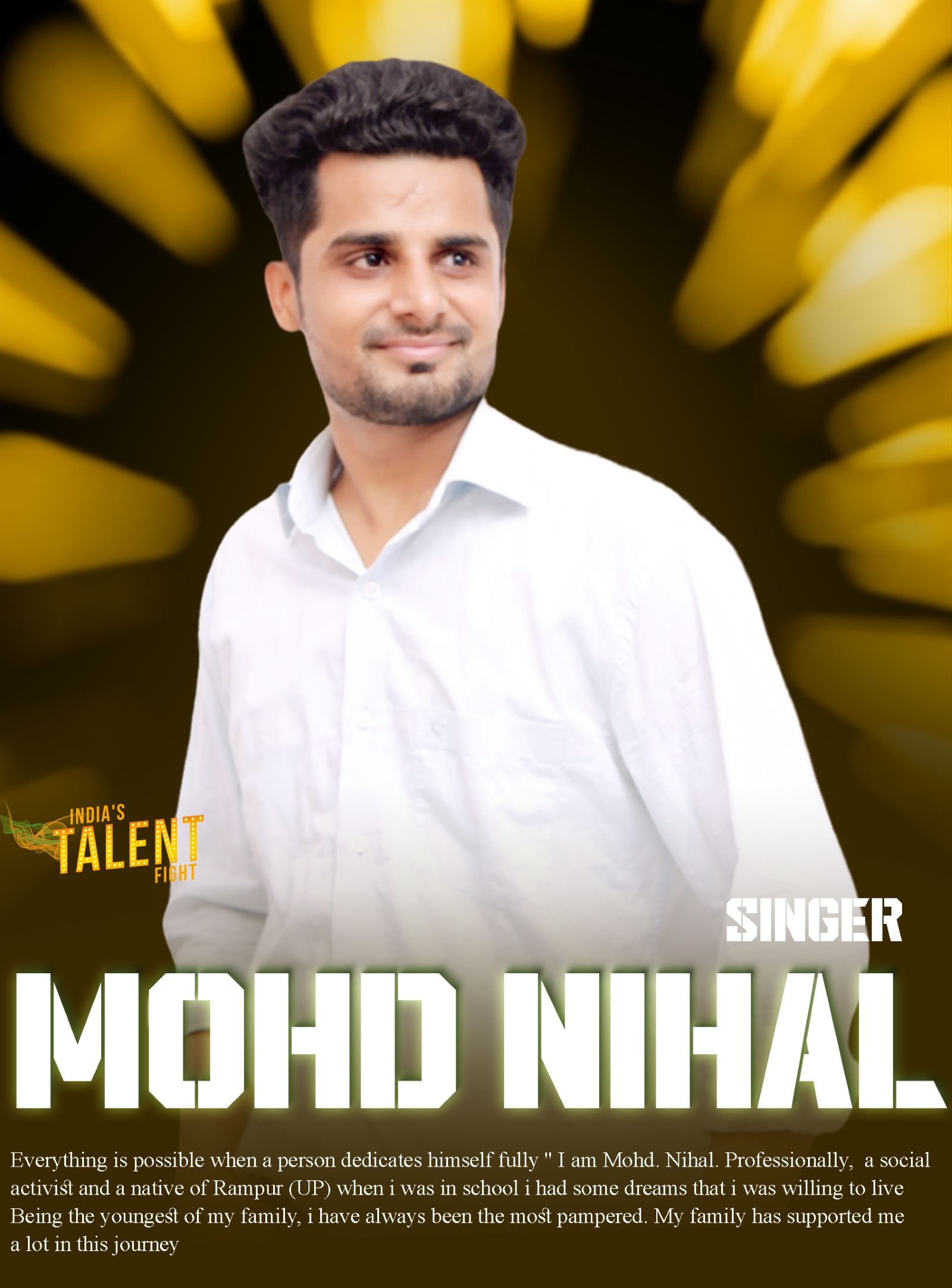 SINGER MOHD NIHAL RAMPUR‘ Everything is possible when a person dedicates himself fully ” I am Mohd. Nihal. Professionally, a social activist and a native of Rampur (UP) when i was in school i had some dreams that i was willing to live . Being the youngest of my family, i have always been the most pampered. My family has supported me a lot in this journey. ITF Season 4, ITF Singing ITF Singer sweety