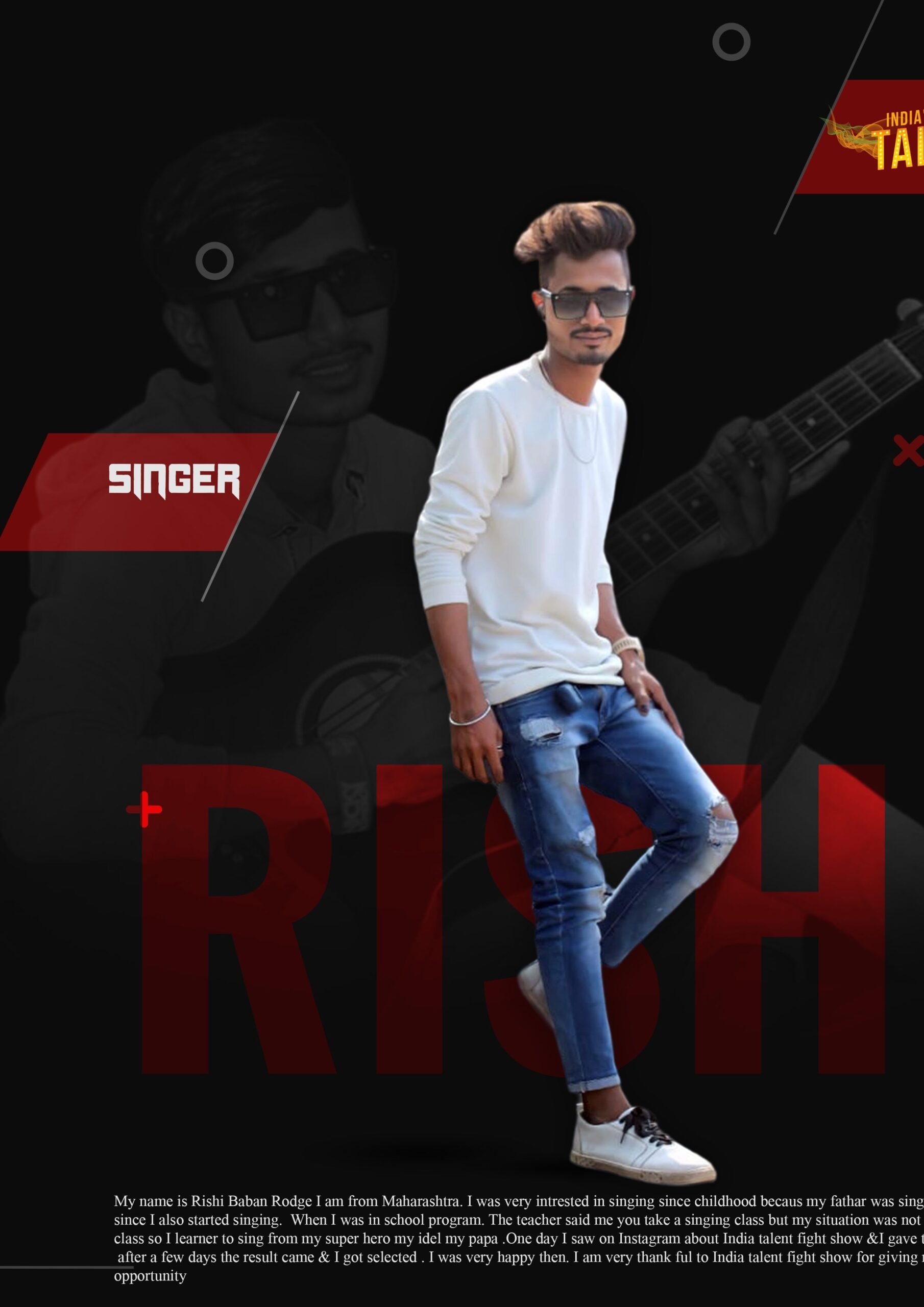 SINGER RISHI RODGE AURANGABADMy name is Rishi Baban Rodge I am from MaharashtraI was very intrested in singing since childhood becaus my fathar was singing a song since I also started singingWhen I was in school program. The teacher said me you take a singing class but my situation was not suitable for class so I learner to sing from my super hero my idel my papa .One day I saw on Instagram about India