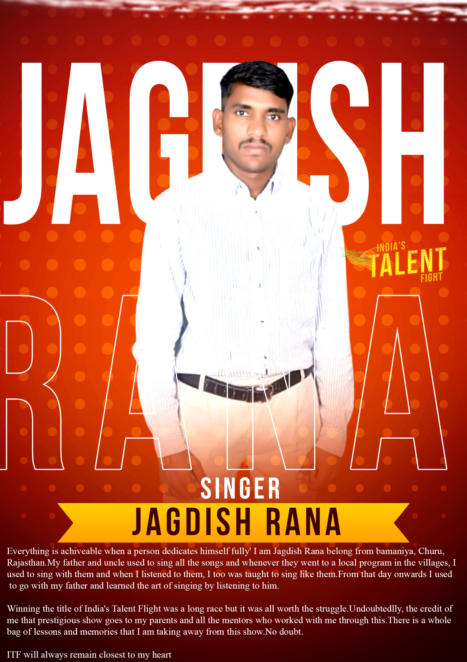 SINGER JAGDISH RANA BAMNIYA‘Everything is achiveable when a person dedicates himself fully’ I am Jagdish Rana belong from bamaniya, Churu, Rajasthan.My father and uncle used to sing all the songs and whenever they went to a local program in the villages, I used to sing with them and when I listened to them, I too was taught to sing like them.From that day onwards I used to go with my father and learned the art