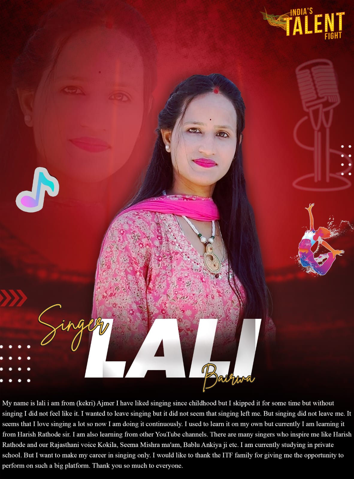 ITF Singer lali Bairwa Bhimrawas Ajmer