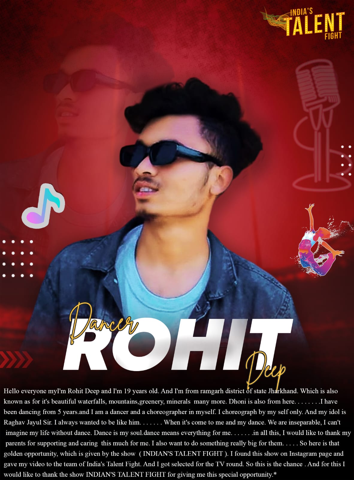Dancer Rohit Deep RamgarhI’m Rohit Deep and I’m 19 years old. And I’m from ramgarh district of state Jharkhand. Which is also known as for it’s beautiful waterfalls, mountains,greenery, minerals many more. Dhoni is also from here. . . . . . . .I have been dancing from 5 years.and I am a dancer and a choreographer in myself. I choreograph by my self only. And my idol is Raghav Jayul Sir. I always wanted