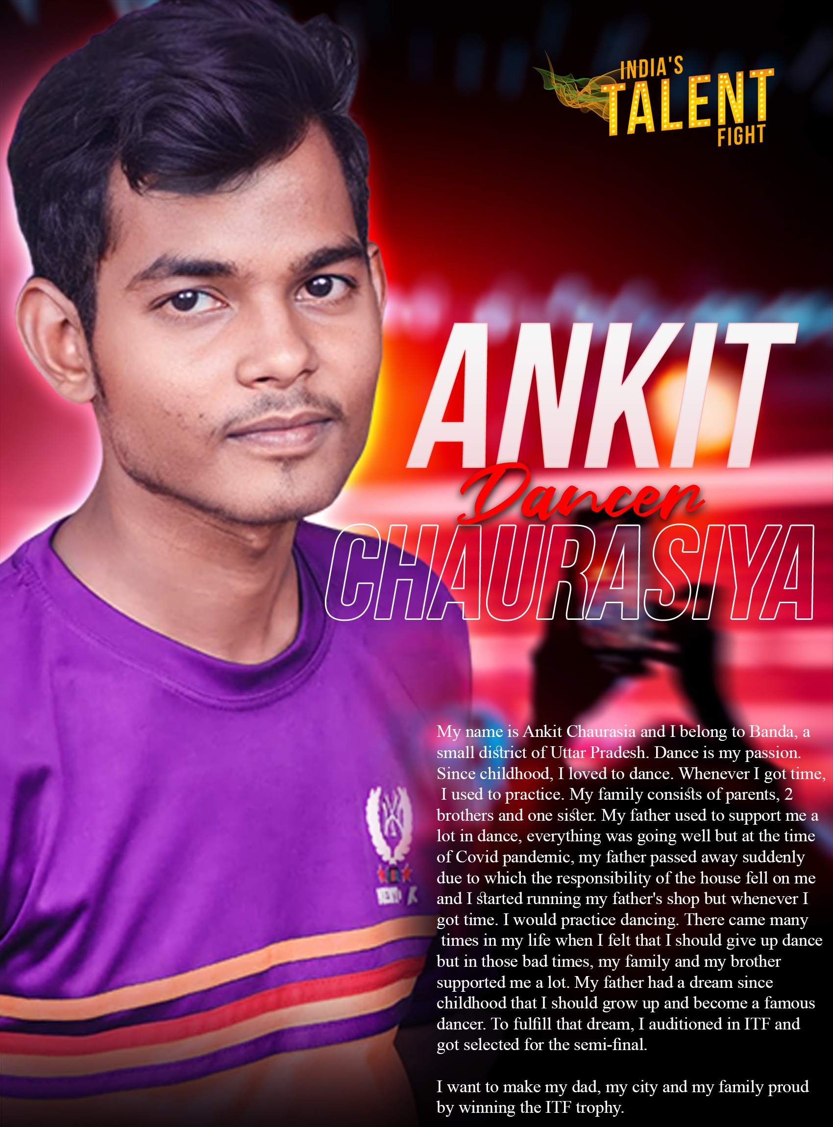 DANCER ANKIT CHAURASIYA BANDAMy name is Ankit Chaurasia and I belong to Banda, a small district of Uttar Pradesh. Dance is my passion. Since childhood, I loved to dance. Whenever I got time, I used to practice. My family consists of parents, 2 brothers and one sister. My father used to support me a lot in dance, everything was going well but at the time of Covid pandemic, my father passed away suddenly due to