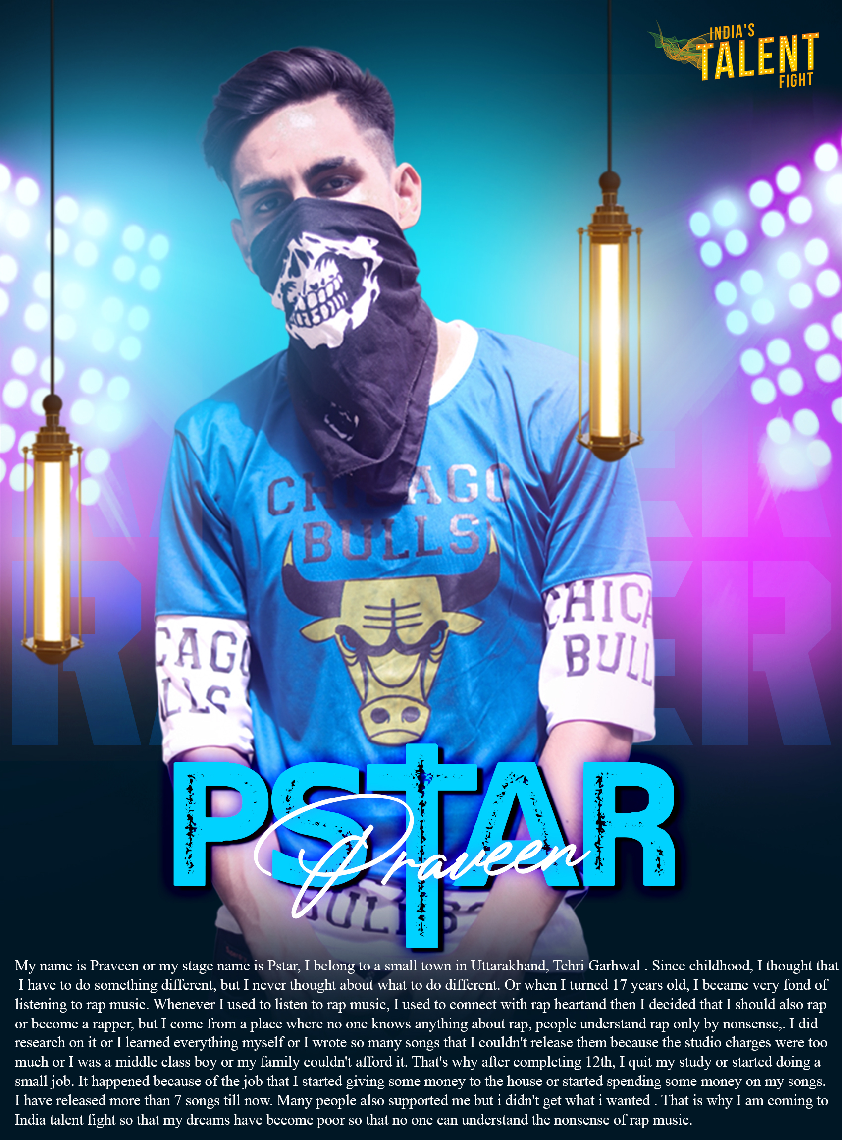 RAPPER PSTAR PRAVEEN DELHIMy name is Praveen or my stage name is Pstar, I belong to a small town in Uttarakhand, Tehri Garhwal . Since childhood, I thought that I have to do something different, but I never thought about what to do different. Or when I turned 17 years old, I became very fond of listening to rap music. Whenever I used to listen to rap music, I used to connect with rap heartand