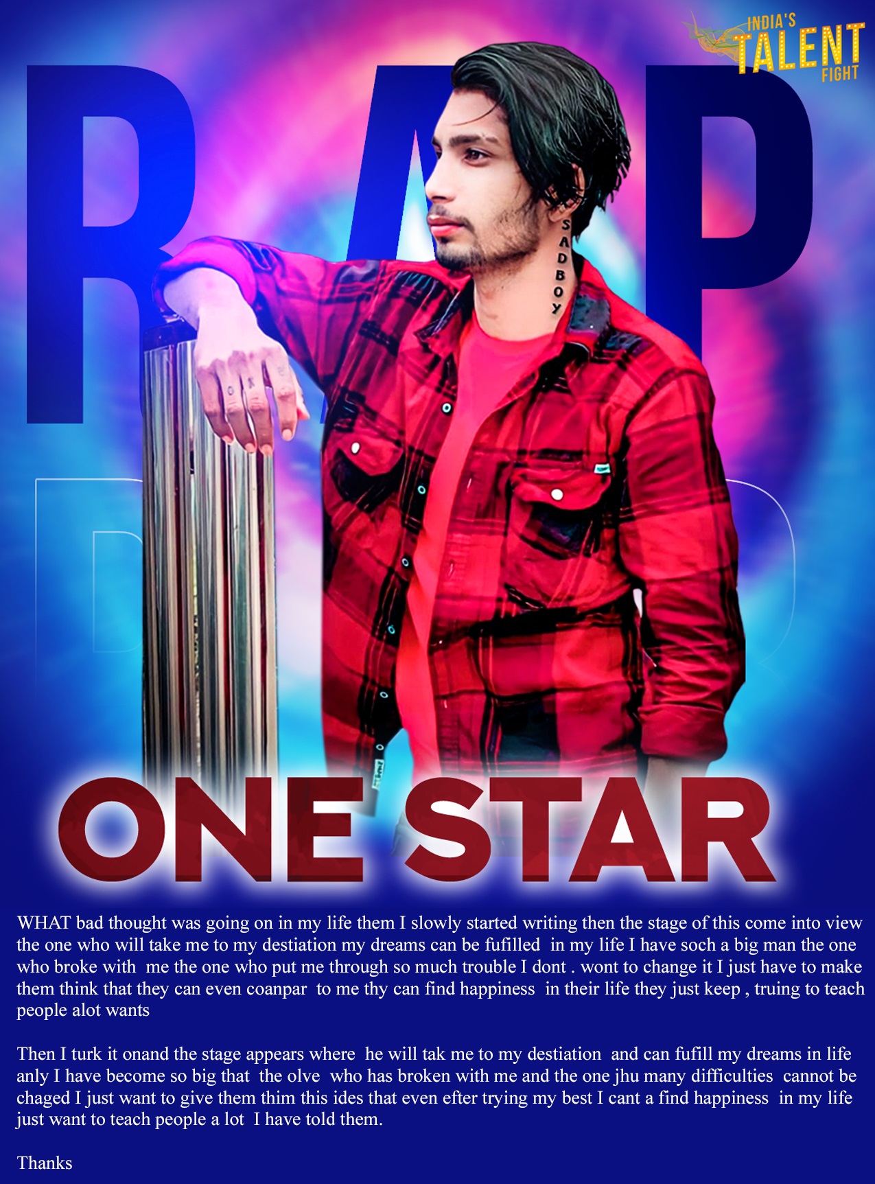 RAPPER ONE STAR BIAORAOne Star R Biaora: WHAT bad thought was goin on in my life them I slowly started writing then the stage of this come into view the one who will take me to my destiation my dreams can be fufilled in my life I have soch a big man the one who broke with me the one who put me through so much trouble I dont . wont to change it I
