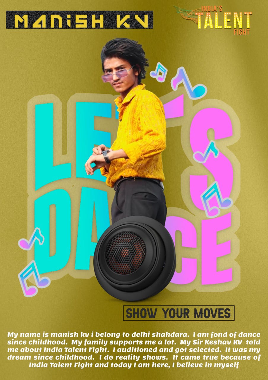 MANISH KV DELHI DANCERHi my name is manish kv i belong to delhi shahdara. I am fond of dance since childhood. My family supports me a lot. My Sir Keshav KV told me about India Talent Fight. I auditioned and got selected. It was my dream since childhood. I do reality shows. It came true because of India Talent Fight and today I am here, I believe in myself ITF Season 3, itf-dancing Seasion 3