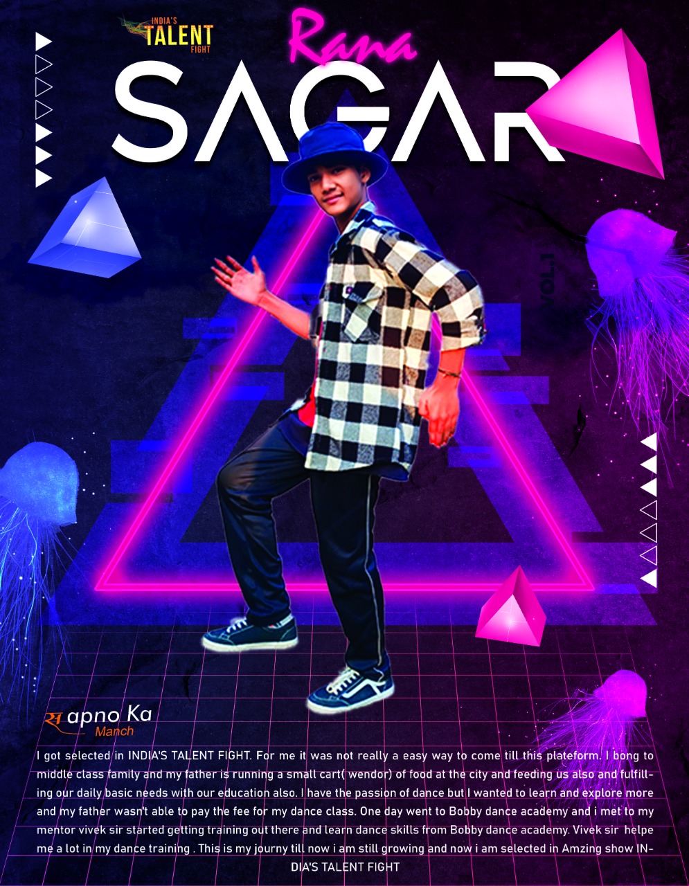 SAGAR RANA GURUGRAM DANCEREverything happens in its right time and at right place when destiny call you it become a success.hi i am Sagar i got selected in INDIA’S TALENT FIGHT. For me it was not really a easy way to come till this plateform. I bong to middle class family and my father is running a small cart( wendor) of food at the city and feeding us also and fulfilling our daily basic needs