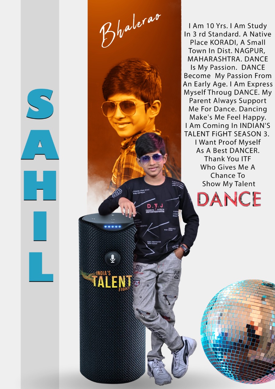 SAHIL SHAILESH NAGPUR DANCERMy NAME Is Sahil Shailesh Bhalerao.I Am 10 Yrs. I Am Study In 3 rd Standard. A Native Place KORADI, A Small Town In Dist. NAGPUR, MAHARASHTRA. DANCE Is My Passion. DANCE Become My Passion From An Early Age. I Am Express Myself Througe DANCE. My Parent Always Support Me For Dance. Dancing Make’s Me Feel Happy. I Am Coming In INDIAN’S TALENT FiGHTER SEASON 3. I Want Proof Myself As A