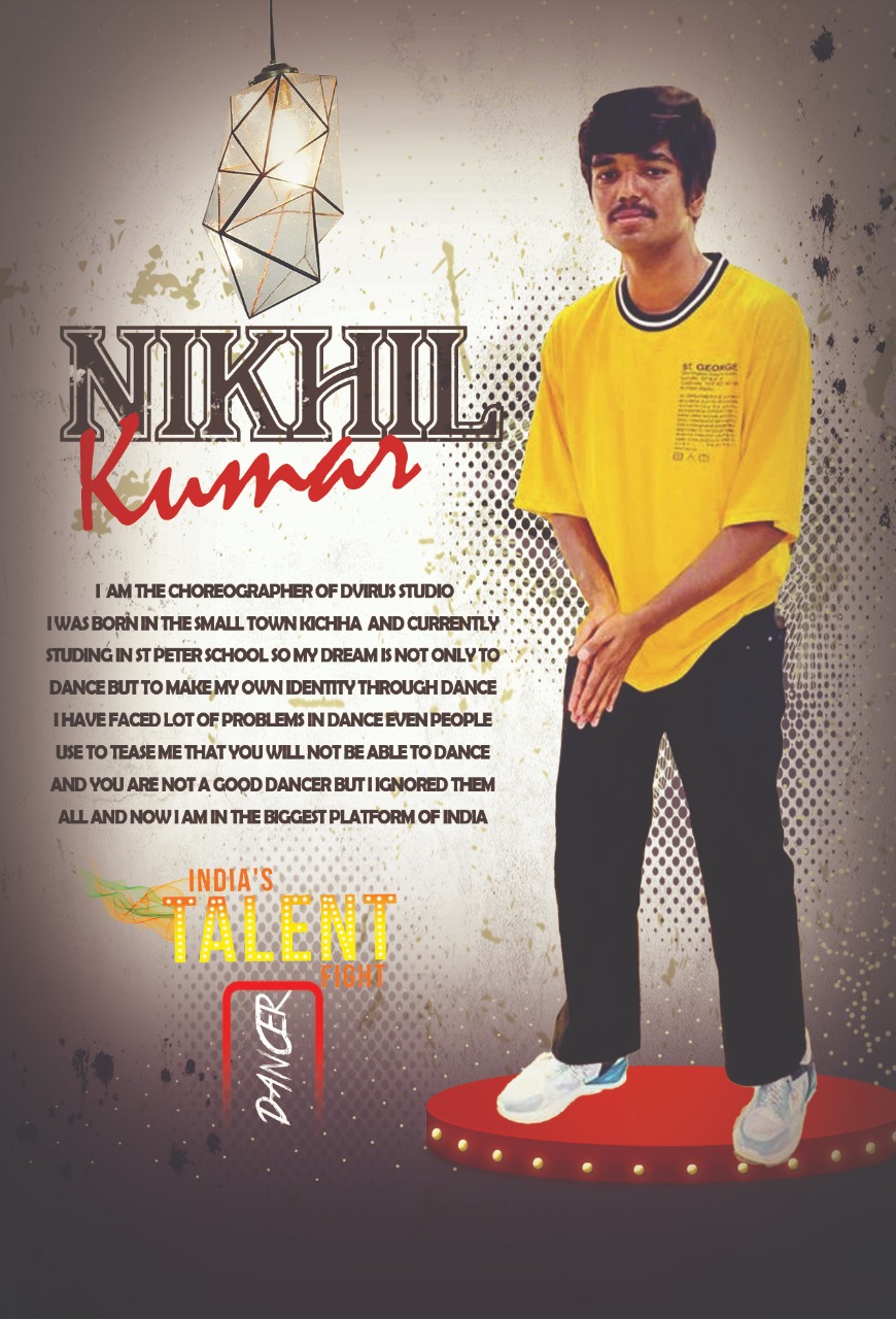 NIKHIL KUMAR SINGH KICHHA DANCERStrength and growth come only through continuous effort and struggle. … i am nikhil kumar singh from uttrakhand and i have my thệ choreographer of dvirus studioI was born in the small town kichha and currently studing in st peter school so my dream is not only to dance but to make my own identity through danceI have faced lot of problems in dance even people use to tease me that