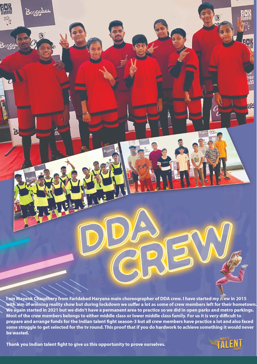 Mayank Chaudhary I am Mayank Chaudhary from Faridabad Haryana main choreographer of DDA crew. I have started my crew in 2015 with aim of winning reality show but during lockdown we suffer a lot as some of crew members left for their hometown. We again started in 2021 but we didn’t have a permanent area to practice so we did in open parks and metro parkings. Most of the crew members belongs to either middle
