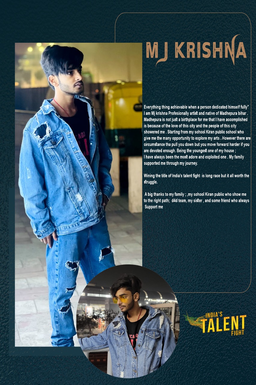 mj krishna madhepur dancerEverything thing achievable when a person dedicated himself fully” I am Mj krishna Profesionally artist and native of Madhepura bihar . Madhepura is not just a birthplace for me that I have accomplished is because of the love of this city and the people of this city showered me . Starting from my school Kiran public school who give me the many opportunity to explore my arts . However there are circumstance