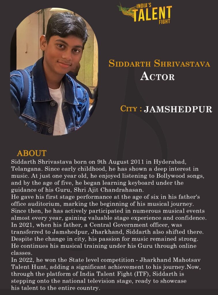 ITF Actor siddarth Shrivastava jamshedpur