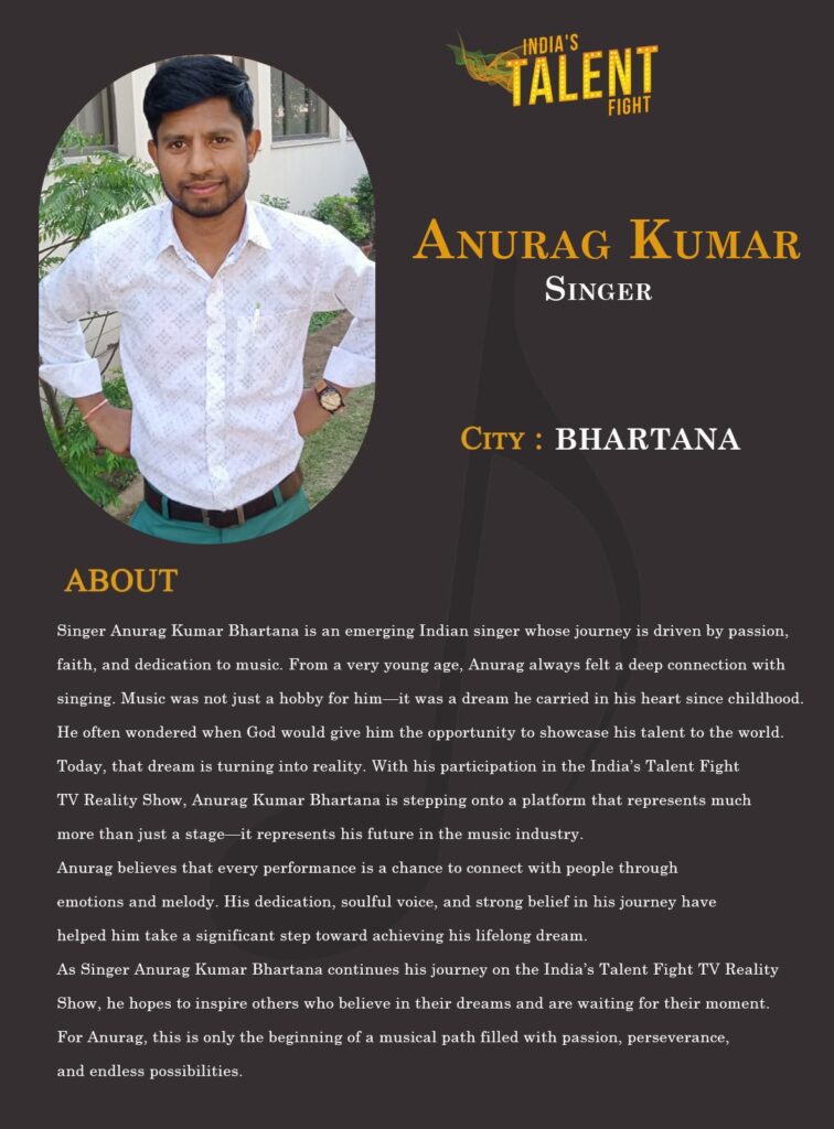 Today, that dream is turning into reality. With his participation in the India’s Talent Fight TV Reality Show, Anurag Kumar Bhartana is stepping onto a platform that represents much more than just a stage—it represents his future in the music industry.