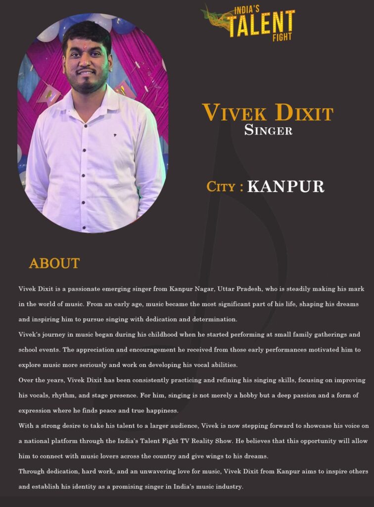 ITF singer Vivek dixit kanpurVivek Dixit is a passionate emerging singer from Kanpur Nagar, Uttar…